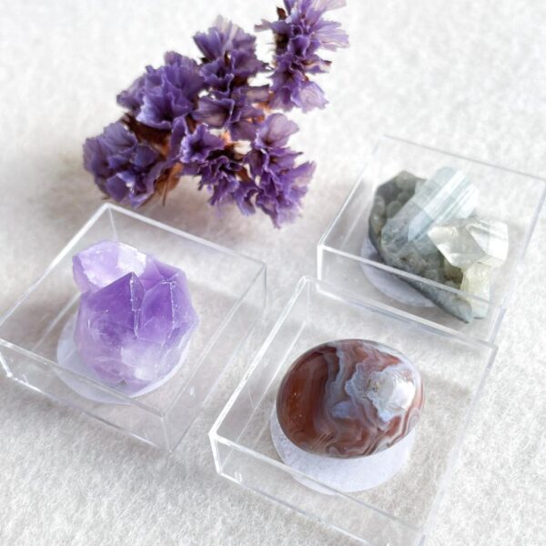 Zo leuk, deze kleine mineralen packs! Deze pack bestaat uit prachtige geselecteerde edelstenen, kristallen en clusters in een transparant doosje met deksel.