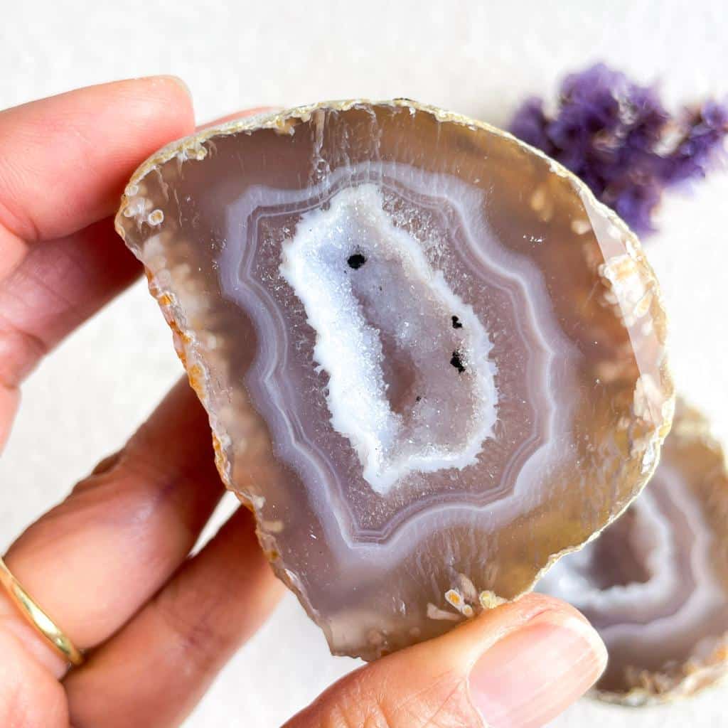 Agaat is een aardende steen die jou kan ondersteunen bij bescherming en innerlijke rust. Ze helpt je om met beide benen op de grond te blijven staan tijdens jouw spirituele ontwikkeling. Dankzij de aardende eigenschappen van deze steen brengt zij balans.