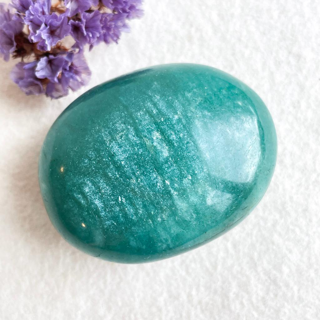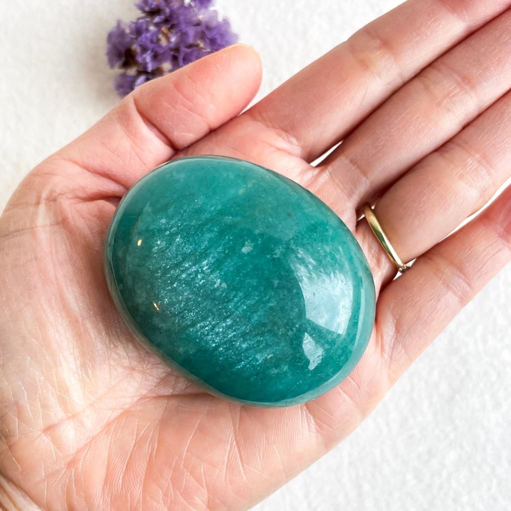 Amazoniet heeft een zachte uitstraling maar is een sterke beschermer tegen negatieve energie. Daarnaast kan ze ondersteunen bij kalmte, evenwicht en rouw.