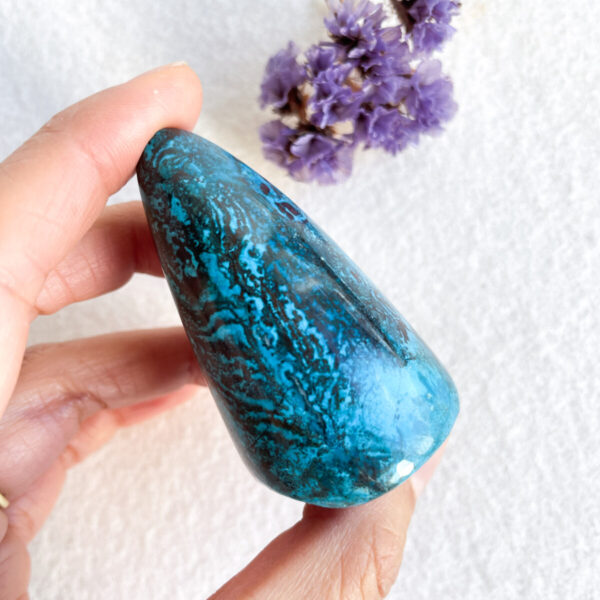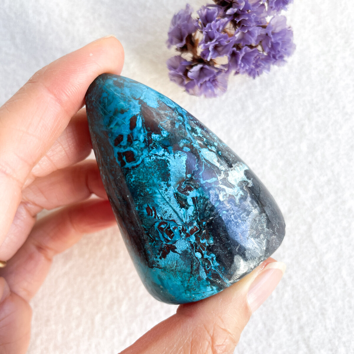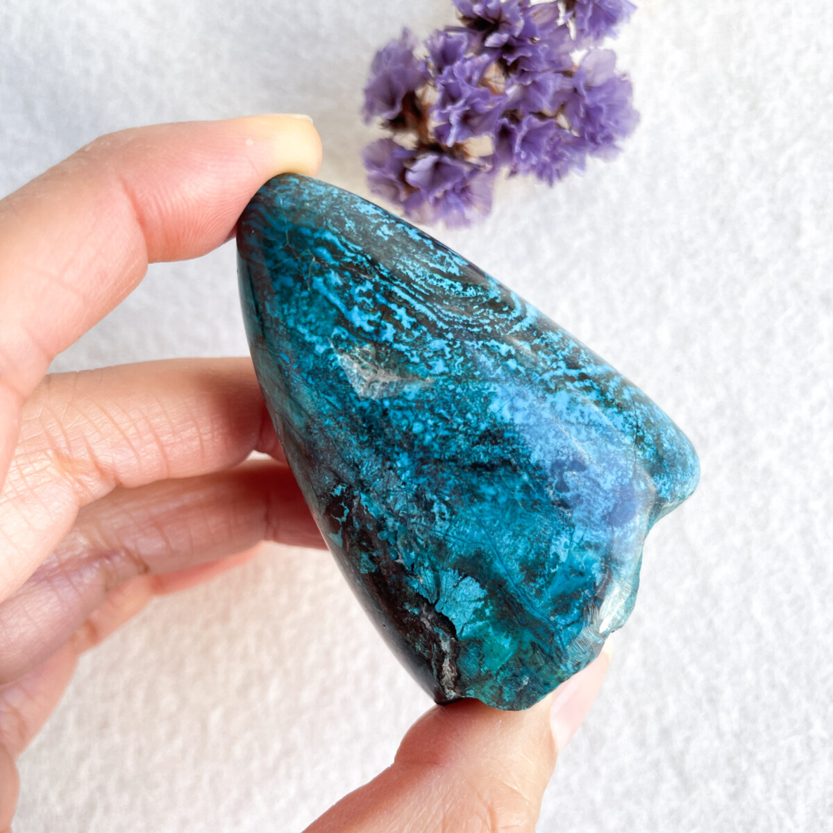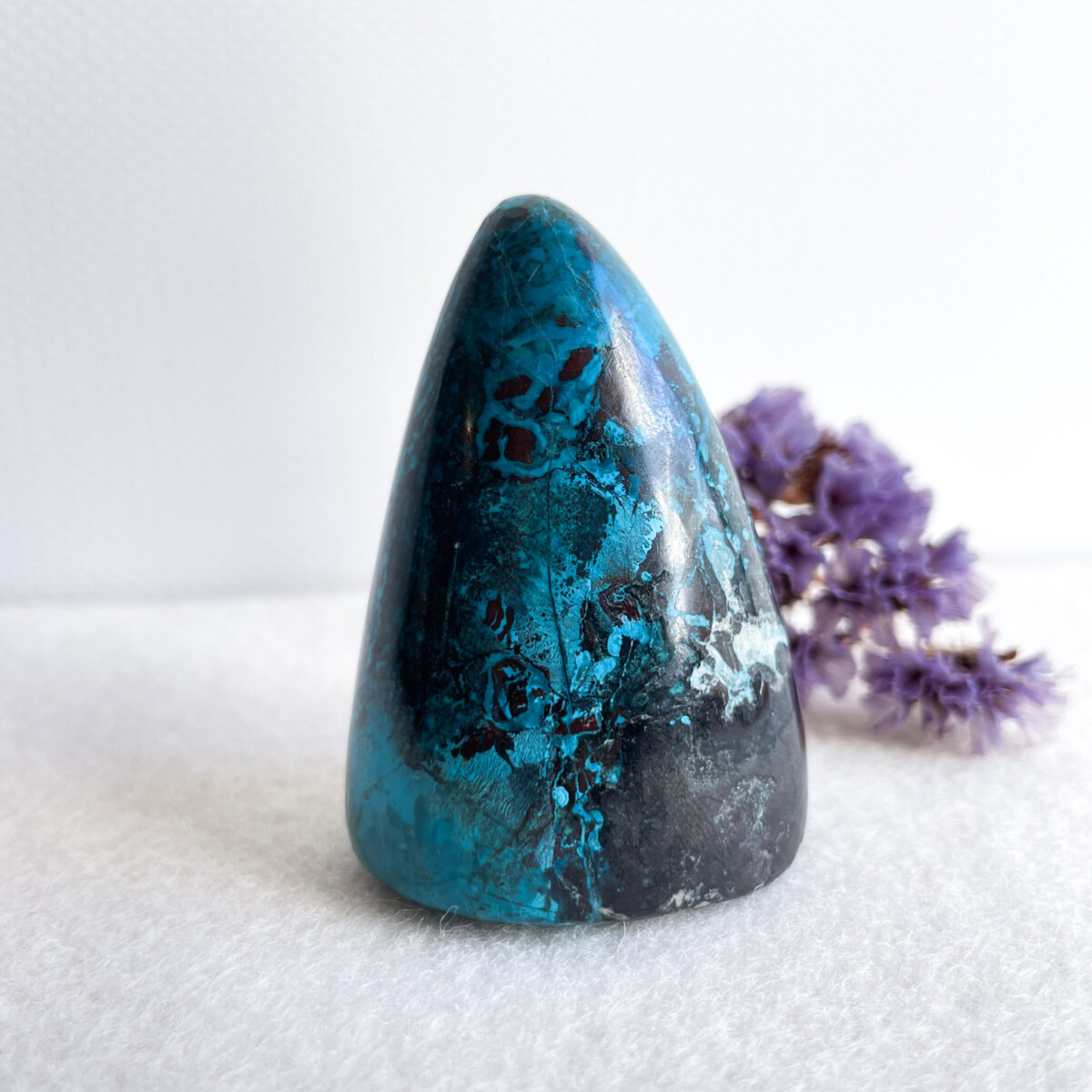 Chrysocolla zorgt voor vrolijkheid en helpt je om uit te spreken wat je echt voelt. Ze ondersteunt je wanneer je meer wilt loslaten.