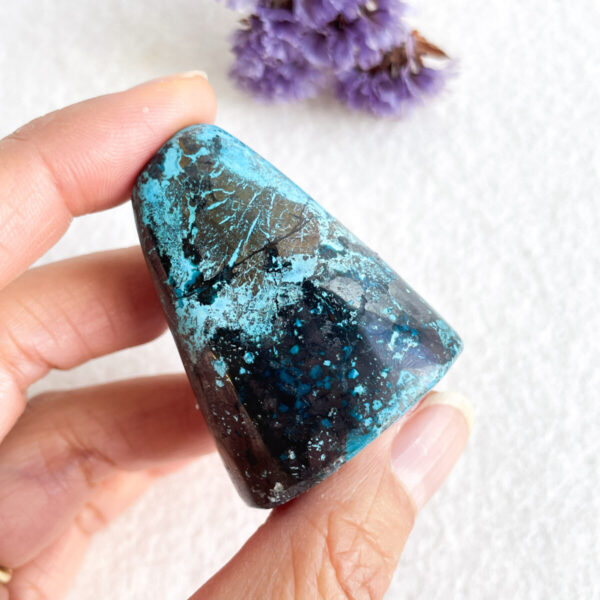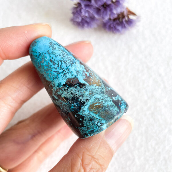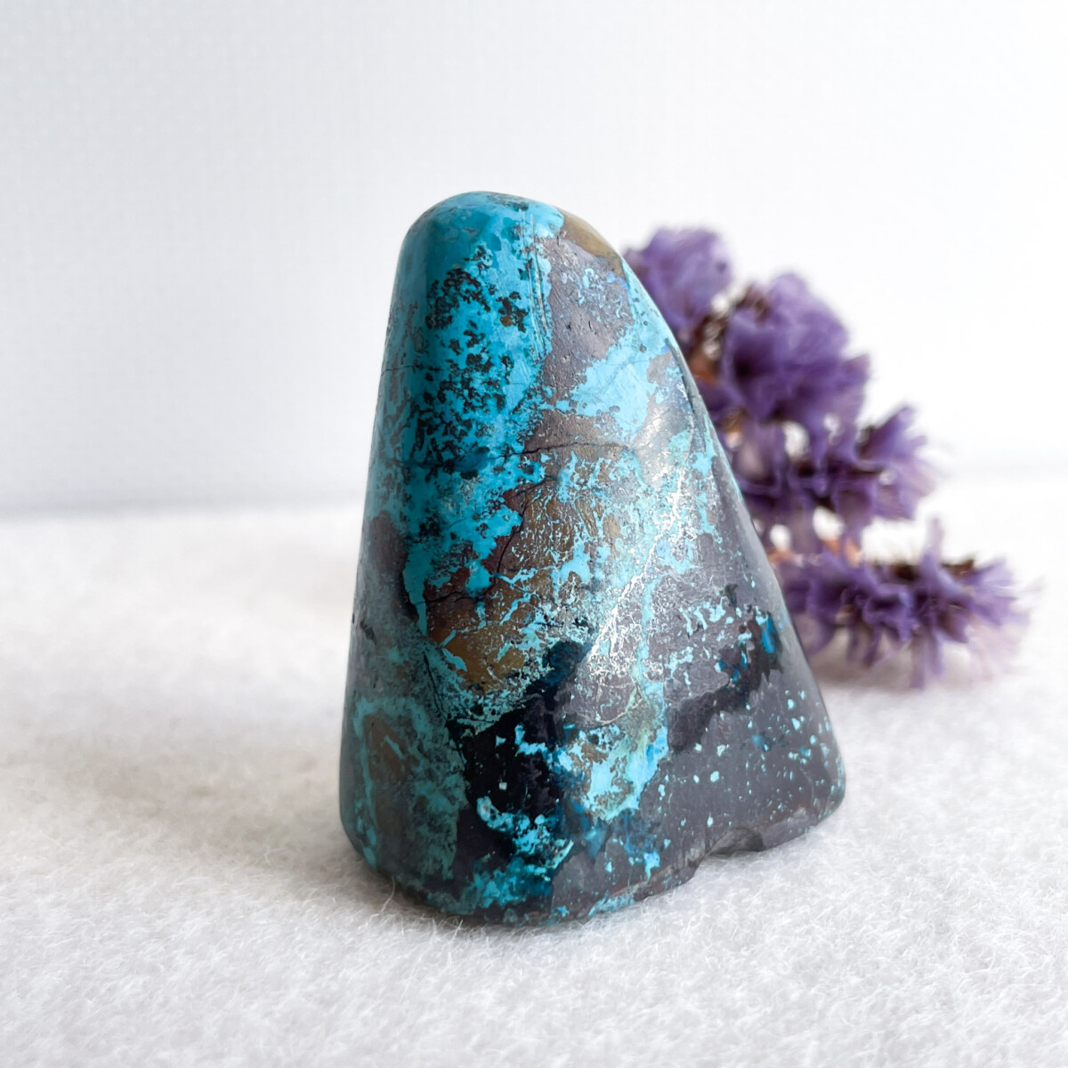 Chrysocolla zorgt voor vrolijkheid en helpt je om uit te spreken wat je echt voelt. Ze ondersteunt je wanneer je meer wilt loslaten.