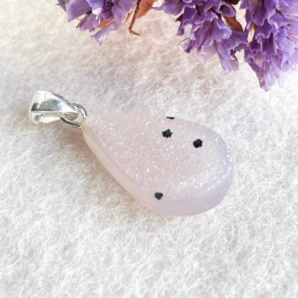 Mooie hanger van druzy chalcedoon en sterling zilveren oogje (925).