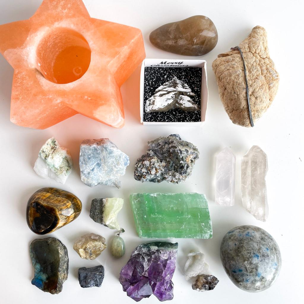 Dit is een mysterybox. Je ontvangt niet persé de stenen van de foto, maar een mix van vergelijkbare kwaliteit en hoeveelheid. Het totaal gewicht is c. 1,8 kg.