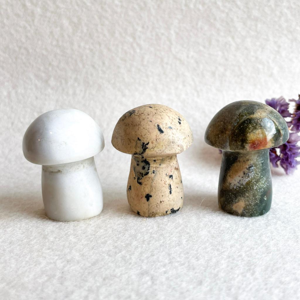 Set van 3 paddenstoelen. Heel leuk voor op de herfsttafel.