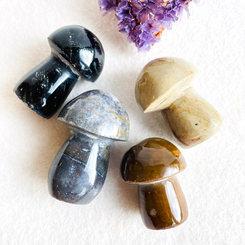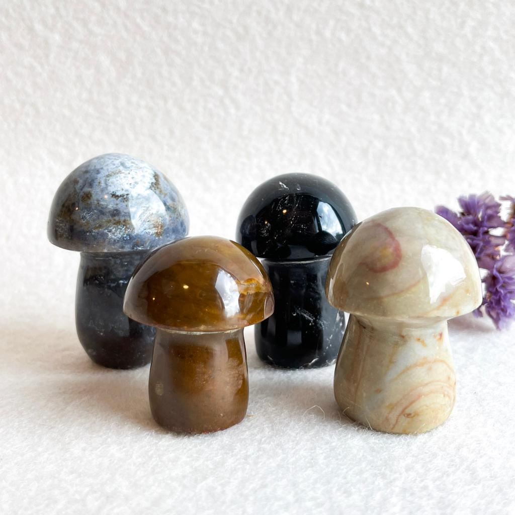 Set van 4 paddenstoelen. Heel leuk voor op de herfsttafel.