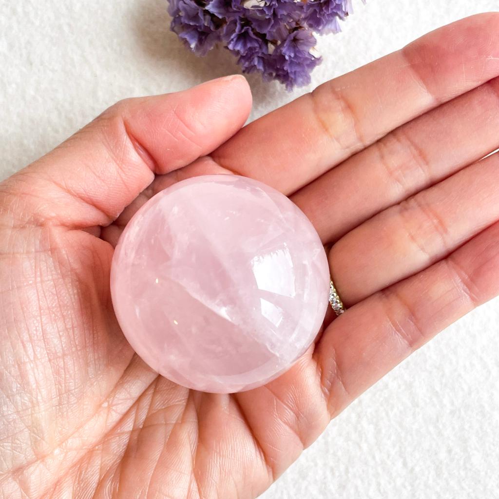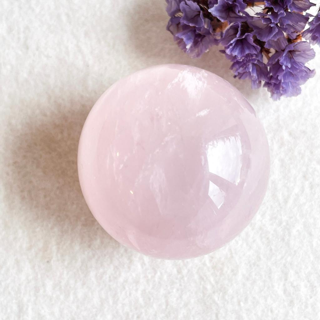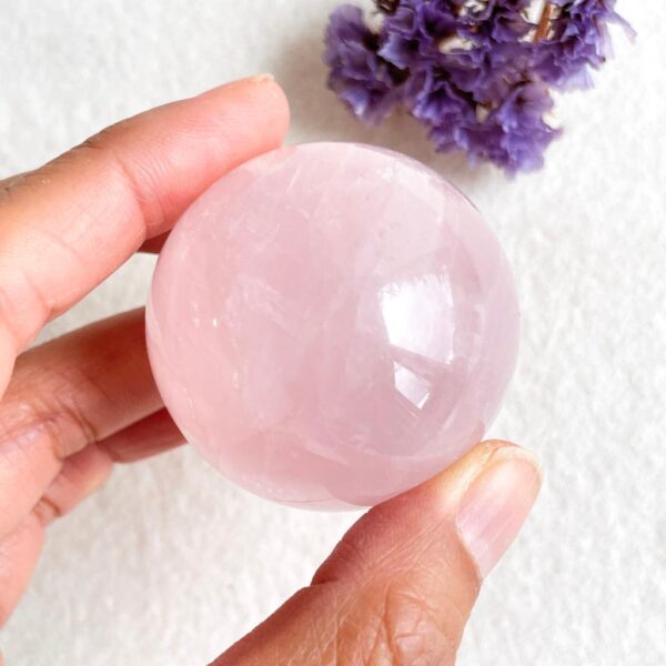 Gepolijste bol van mooie kwaliteit rozenkwarts uit Madagaskar.